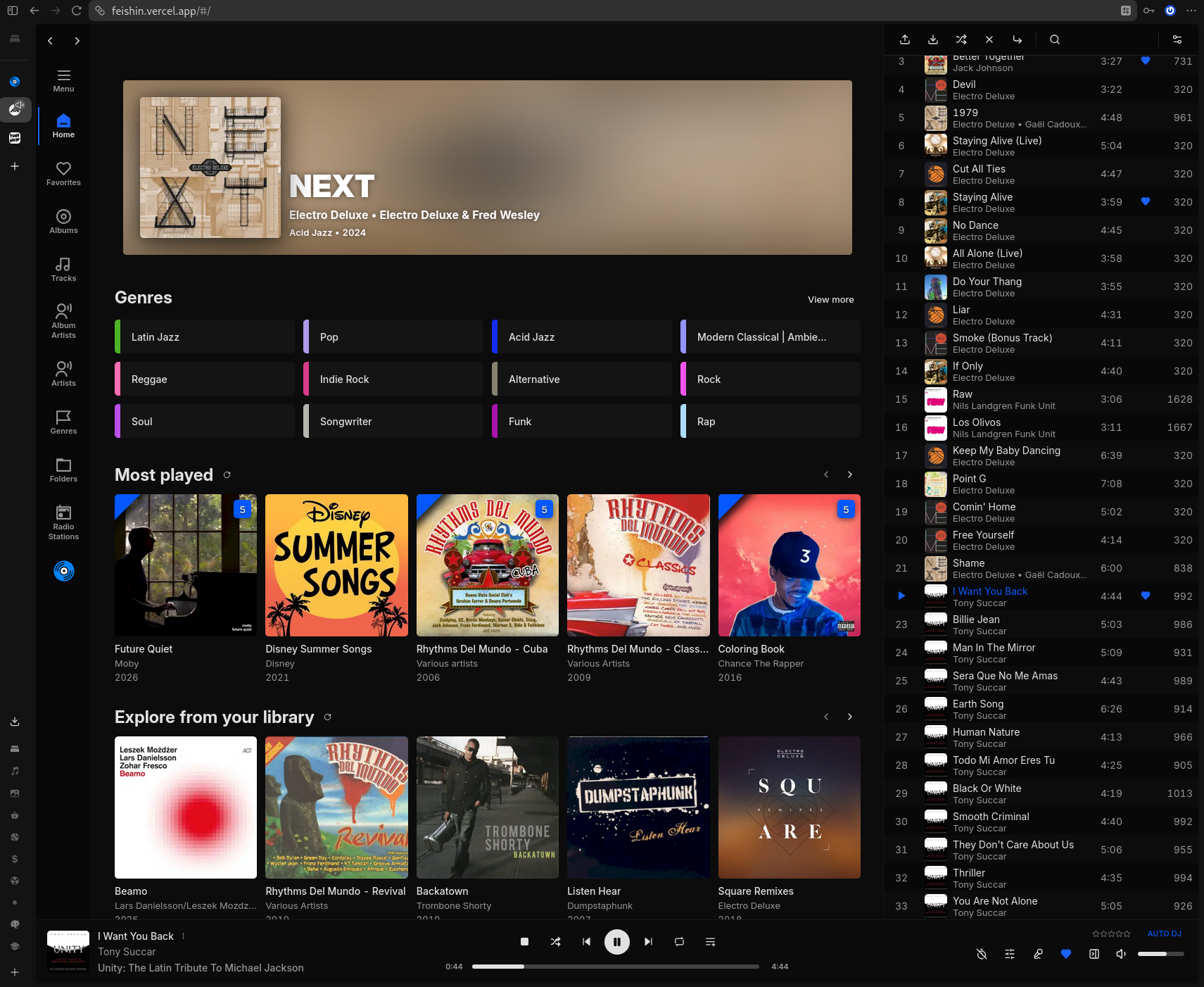 a home page of feishin player
